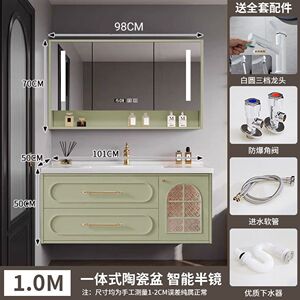 青绿色丨橡木烤漆丨智能镜柜-100CM丨送货入户丨优质陶瓷盆+精美龙头