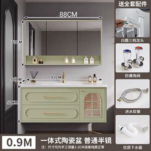 青绿色丨橡木烤漆丨普通镜柜-90CM丨送货入户丨优质陶瓷盆+精美龙头