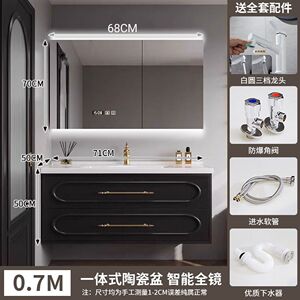 雅黑色丨橡木烤漆丨智能镜柜-70CM丨送货入户丨优质陶瓷盆+精美龙头