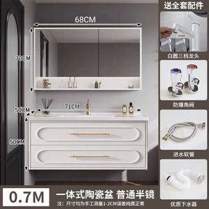 莹白色丨橡木烤漆丨普通镜柜-70CM丨送货入户丨优质陶瓷盆+精美龙头