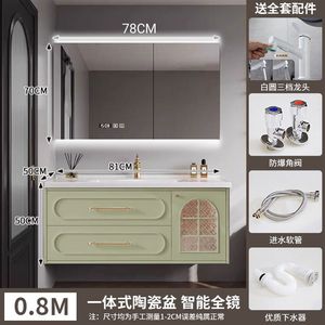 青绿色丨橡木烤漆丨智能镜柜-80CM丨送货入户丨优质陶瓷盆+精美龙头