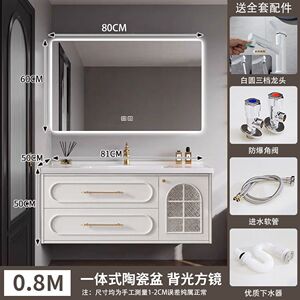 莹白色丨橡木烤漆丨背光方镜-80CM丨送货入户丨优质陶瓷盆+精美龙头