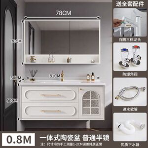 莹白色丨橡木烤漆丨普通镜柜-80CM丨送货入户丨优质陶瓷盆+精美龙头