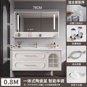 莹白色丨橡木烤漆丨智能镜柜-80CM丨送货入户丨优质陶瓷盆+精美龙头
