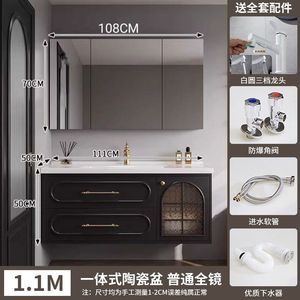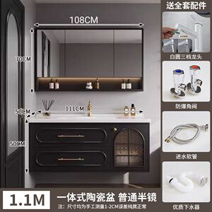 雅黑色丨橡木烤漆丨普通镜柜-110CM丨送货入户丨优质陶瓷盆+精美龙头