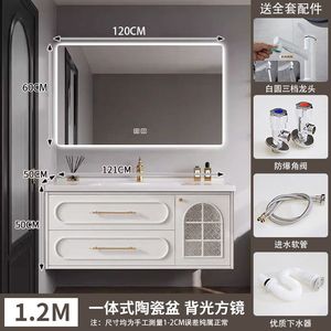 莹白色丨橡木烤漆丨背光方镜-120CM丨送货入户丨优质陶瓷盆+精美龙头
