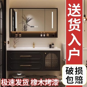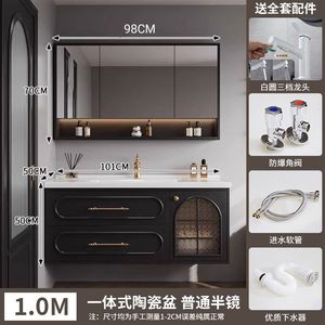 雅黑色丨橡木烤漆丨普通镜柜-100CM丨送货入户丨优质陶瓷盆+精美龙头