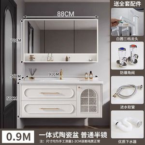 莹白色丨橡木烤漆丨普通镜柜-90CM丨送货入户丨优质陶瓷盆+精美龙头