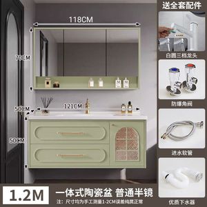 青绿色丨橡木烤漆丨轻奢镜柜-120CM丨送货入户丨优质陶瓷盆+精美龙头