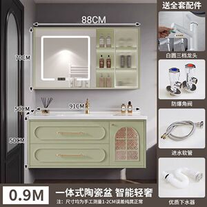 青绿色丨橡木烤漆丨智能镜柜-90CM丨送货入户丨优质陶瓷盆+精美龙头