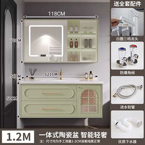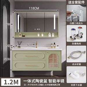 青绿色丨橡木烤漆丨智能镜柜-120CM丨送货入户丨优质陶瓷盆+精美龙头