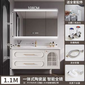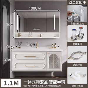 莹白色丨橡木烤漆丨智能镜柜-110CM丨送货入户丨优质陶瓷盆+精美龙头