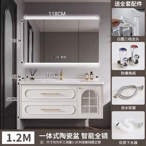莹白色丨橡木烤漆丨智能镜柜-120CM丨送货入户丨优质陶瓷盆+精美龙头