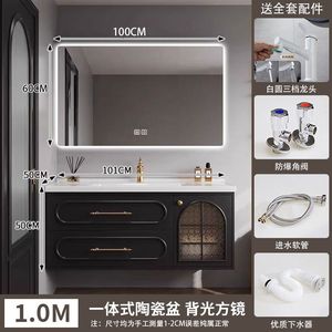 雅黑色丨橡木烤漆丨背光方镜-100CM丨送货入户丨优质陶瓷盆+精美龙头