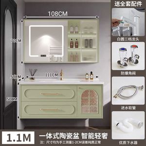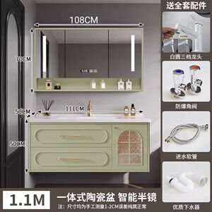 青绿色丨橡木烤漆丨智能镜柜-110CM丨送货入户丨优质陶瓷盆+精美龙头