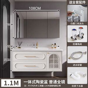 莹白色丨橡木烤漆丨普通镜柜-110CM丨送货入户丨优质陶瓷盆+精美龙头