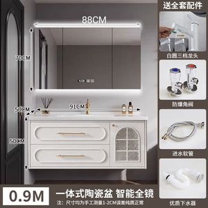 莹白色丨橡木烤漆丨智能镜柜-90CM丨送货入户丨优质陶瓷盆+精美龙头