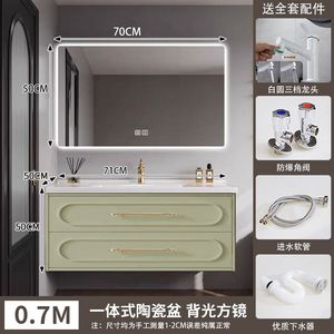 青绿色丨橡木烤漆丨智能镜柜-70CM丨送货入户丨优质陶瓷盆+精美龙头
