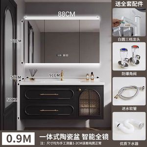 雅黑色丨橡木烤漆丨智能镜柜-90CM丨送货入户丨优质陶瓷盆+精美龙头