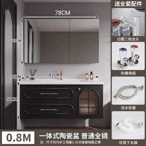 雅黑色丨橡木烤漆丨普通镜柜-80CM丨送货入户丨优质陶瓷盆+精美龙头