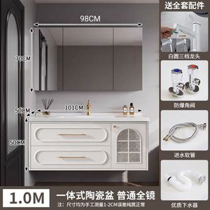 莹白色丨橡木烤漆丨轻奢镜柜-100CM丨送货入户丨优质陶瓷盆+精美龙头