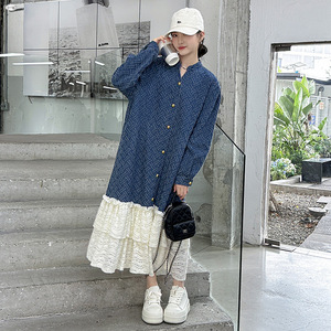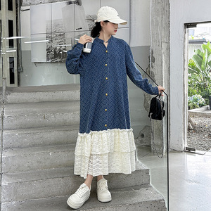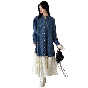 女童蕾丝拼接提花牛仔连衣裙春秋2025新款法式洋气复古渐变长裙