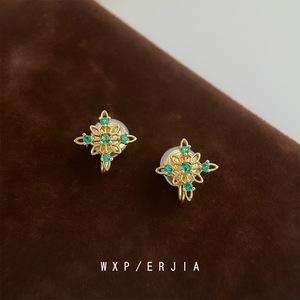 文艺复古微镶锆石雪花蚊香盘耳夹时尚轻奢中古风高级感镀18K耳饰