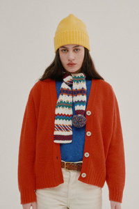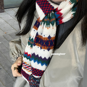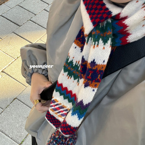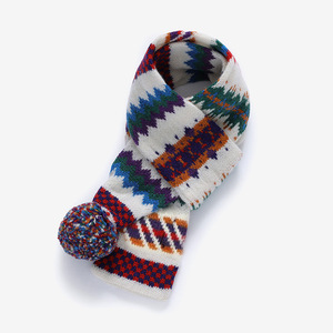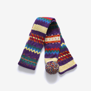 童趣可爱毛球 多色拼接细款围巾时尚气质百搭保暖围巾