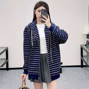 25秋季字母刺绣条纹撞色休闲时髦显瘦百搭连帽长袖拉链卫衣外套女