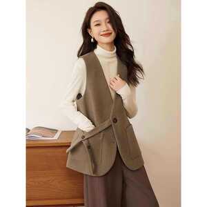 2025春秋新款百搭洋气显瘦背心可调节腰带马甲时尚百搭显瘦西装女