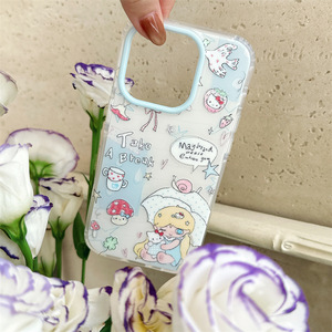 可爱蘑菇kitty撑伞女孩苹果17promax手机壳适用16pro双层15promax