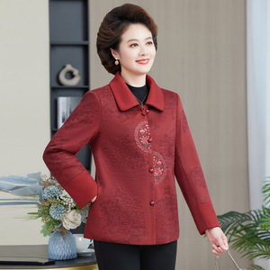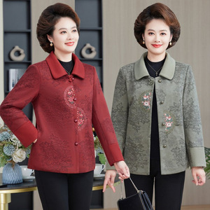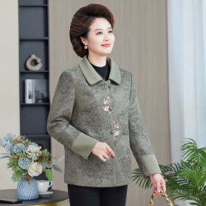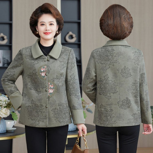 奶奶秋装外套中老年人妈妈绣花上衣女60岁70老太太翻领衣服婆婆女