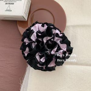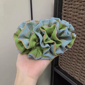 法式原野绿拼色褶皱绣球发圈发饰发绳头花百搭气感马尾丸子头绑发
