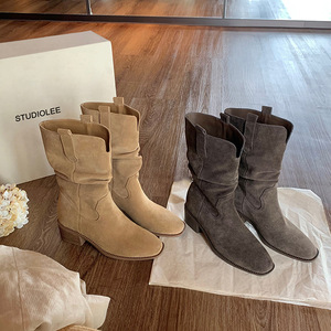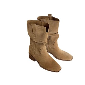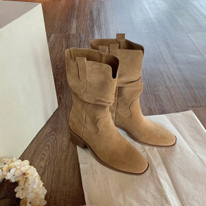 羊皮版~葡萄妈同款增高8cm~韩系圆头V口粗跟显瘦堆堆短靴马丁靴女