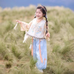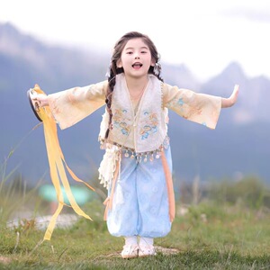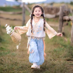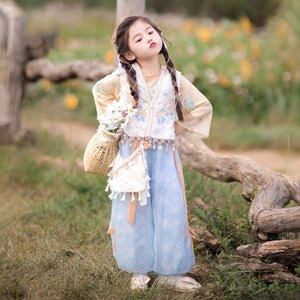 汉服女童2025秋季新款唐装儿童新中式古风三件套古装女孩国风套装