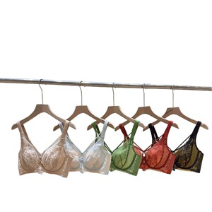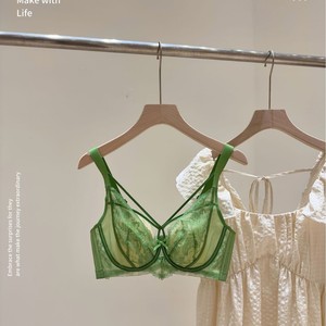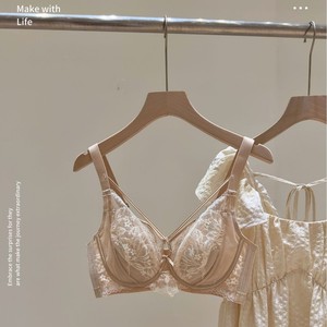 新款056双层网纱自然通透舒适聚拢轻薄水晶杯内衣大胸显小文胸罩