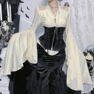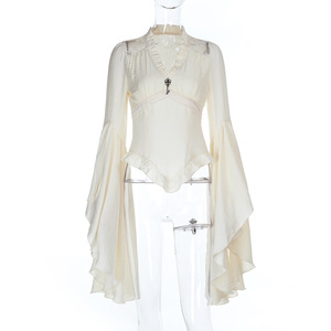 CF25241暗黑系V领宫廷风长袖上衣2025新款哥特风时尚复古衬衣女