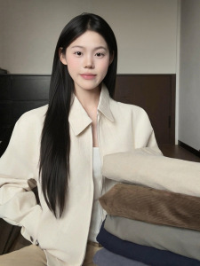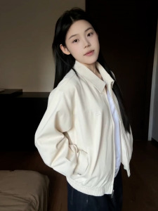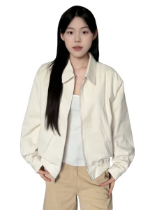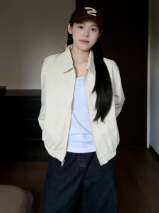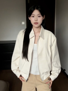 韩系米白色翻领外套女早秋季2025新款简约设计感气质短款夹克上衣