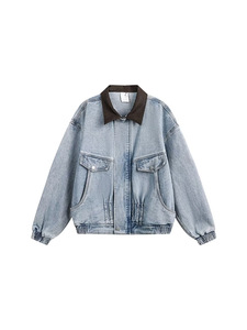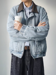 美式复古翻领拼接牛仔外套男装秋季新款潮牌宽松休闲街头工装夹克