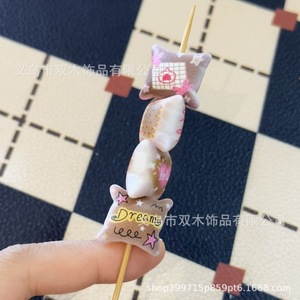 19*21mm咖色系印花字母星星抱枕串珠 diy手链手机链包挂车挂配件