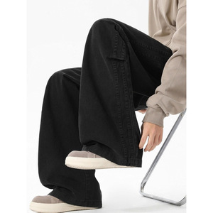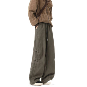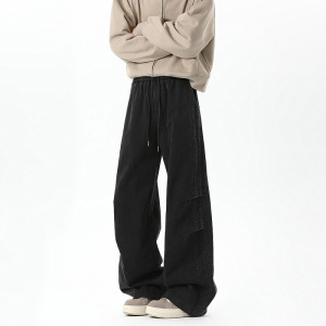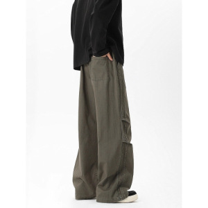 潮牌美式皱褶2025直筒工装裤女新款复古宽松高街阔腿休闲情侣长裤