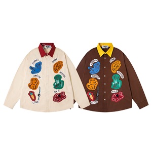 Broken Mirror 25秋季New复古古着趣味图案宽松长袖衬衫