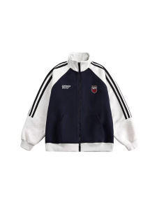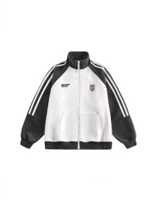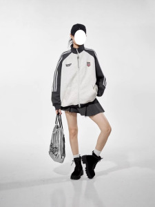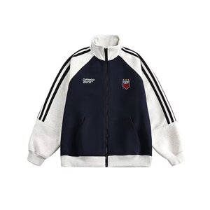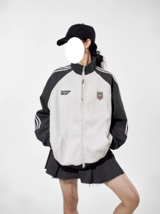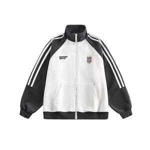 美式街头复古刺绣棒球服加绒情侣卫衣运动风潮宽松休闲三条杠开衫