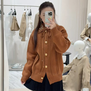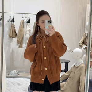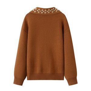 现货2025秋季新款宽松休闲可拆重工钉珠翻领针织开衫LF25Q41ZC078