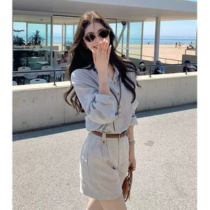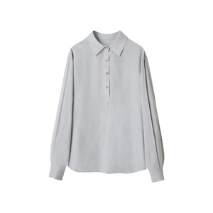 2025年秋季新款翻领长袖浅灰色衬衫女休闲百搭小个子宽松显瘦上衣