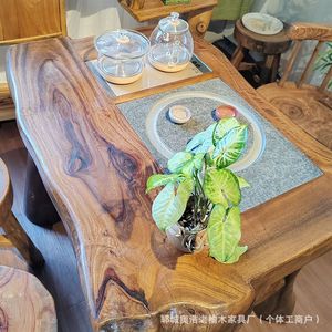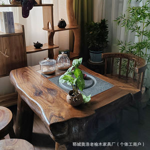 复古怀旧老榆木茶台烧水壶泡茶桌实木家用客厅茶几茶桌功夫泡茶桌