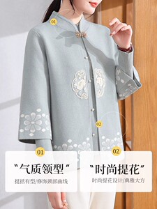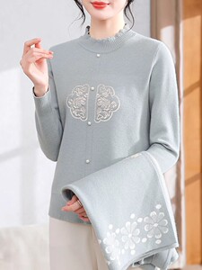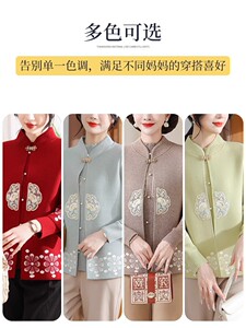 中老年时尚国风毛衣新中式两件套中年上衣妈妈春装短外套针织衫
