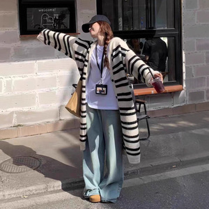 6137【绵羊绒】韩系慵懒风条纹撞色连帽外套小李-不退换