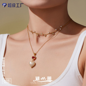 谜丽 轻奢心形满钻吊坠叠戴锁骨链华丽宫廷风女款不锈钢项链现货