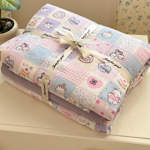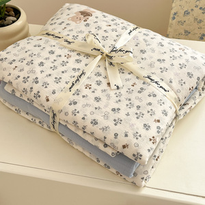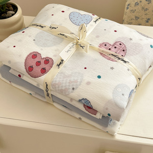 A类卡通风少女双层纱布四件套新床全棉被罩被套床学生宿舍三件套